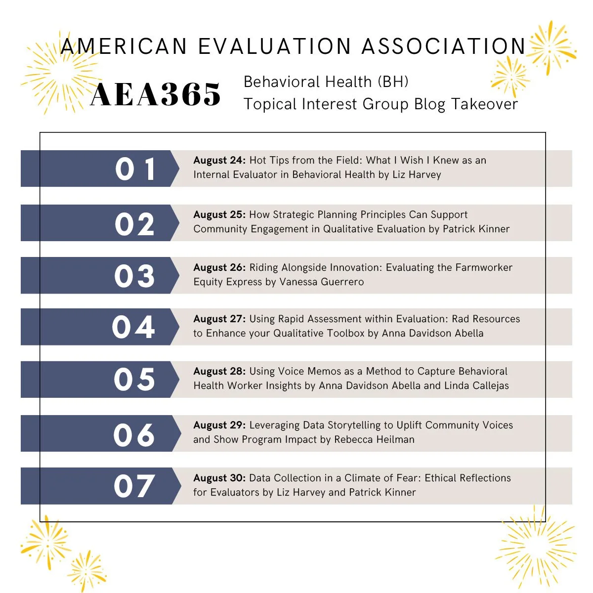 Monday, August 25th, marked the start of the Behavioral Health TIG blog takeover week on #AEA365!